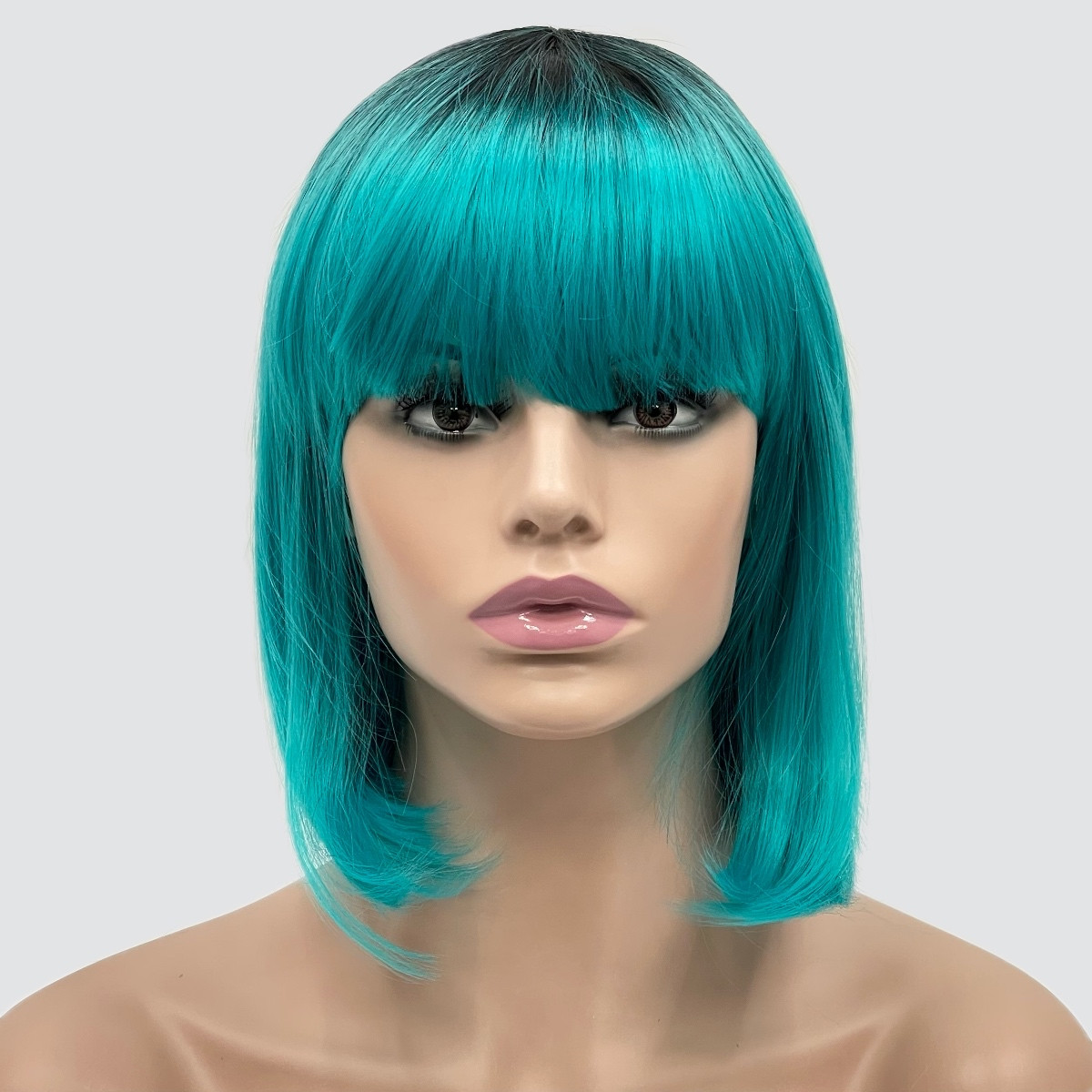 Перука каре BOB колір T1B/Cyan блакитний/зелений морська хвиля, для сцени, танці і вечірки. Термоволосся
