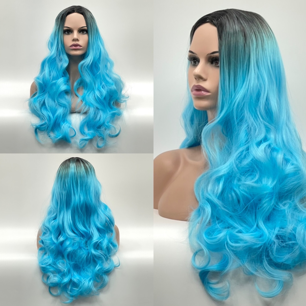 Перука омбре без чубчика Joy, термоволоси, колір блакитний для сцени, аніматорів, танців та вечірок
